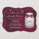 Ein Leuchtkäfer-Maurerglas des herrlichen und eleganten Weins hued verbindet Polterabendeinladung, die aussehen wie es glüht. Fügen Sie die Initialen und oder Monogramm der Braut und des Bräutigams dem Glas mit einem Wein und Weiß Druckeinem bandblickentwurf hinzu. Ein rustikaler dennoch eleganter Entwurf mit den bezaubernden Leuchtkäfern inner und äußer vom Glas. Diese lädt sind schön während einer Nachtzeit draußen Barnyard, Bauernhaus oder Fall-Brautparty-Party des Landes themed ein. Grafik © Chrissy H. Studios, LLC. Alle Rechte vorbehalten.