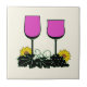 Zwei Gläser des Wein-Sets unter hübschen gelben Sonnenblumen, einem Weinstock und Trauben.