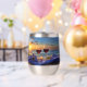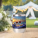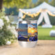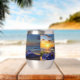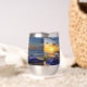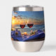 Wein am Strand bei Sonnenuntergang. Ein wunderschöner Weinhändler, um Ihren Wein cool für die Natur behalten. Ein hübsches Weingeschenk.