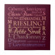 Diese dekorative Weinfliese hat unterschiedliche Vielzahl der Weintrauben, die auf sie in einigem reizendem Schriftart geschrieben werden und macht ein großes Geschenk für Weinliebhaber. Diese kundenspezifische Weinfliese kann als Untersetzer benutzt werden, oder fertigen Sie ihn mit unseren einfachen Werkzeugen besonders an und stellen Sie einen trivet oder Geschenk-/Andenkenkasten her.