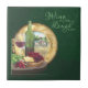 Gemälde Stillleben eines Glases Rotwein, Käse und Weintrauben mit einem portholzem Blick auf eine Fischerstadt auf der Keramik Kachel. Fun Zitat "Wine ein wenig lachen viel" auf einem dunkelgrünen Hintergrund.