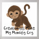 Armer kleiner Affe mit Tränen, die die Leichenfresser verwirren, verweigern die Evolution mit Sprichwort "Kreationisten bringen meinen Affen zum Weinen". Funny Atheist Poster mit einer pro-Evolution Nachricht für Freethinker.