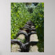 Die rustikale Weinhofserie der Weinberge Poster Print zeigt ein landschaftliches Naturfoto einer Reihe von dicken Weinreben mit üppigen grünen Blätter im Weinland Napa Valley, Kalifornien.