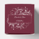 Personalisieren Sie eine einzigartige Gastgeschenk Hochzeit Box für die Gäste mit diesem Wein Geblüht Gastgeschenk Hochzeit Box. Die Einrichtung der Gefälligkeitsbox ist elegant, geblüht mit farblich abgestimmtem Hintergrund. Personalisieren Sie mit dem Bräutigam und den Namen der Braut zusammen mit dem Hochzeitstag. Mit diesem Design sind auch weitere Hochzeitswaren erhältlich.