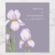 Weinetikett für eine moderne Hochzeit. Zarte Schwertlilien in sanften Lila-Tönen sind vor einem pastellfarbenen Hintergrund dargestellt und schaffen eine Atmosphäre der Raffinesse und Ruhe. Das Design ist modern und luftig, perfekt für eine stilvolle, romantische Hochzeit.