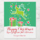 Personalisieren Sie diese festlichen Weihnachtsweinflaschen mit Ihrem eigenen Namen Gruß und Weinsorte. Spaß Weihnachtsgrün, leuchtend rot und weiß Design eines Rentiers mit einer roten Nase über Boxed Weihnachtsgeschenke. Ideal, um Weihnachtswein an Familie, Freunde oder Kunden zu schenken. © Original art graphics and design by Sarah Trett. www.sarahtrett.com für www.mylittleeden.com