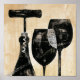© Daphne Brissonnet / Wilder Apple. Das Bild zeigt eine Weinflasche und zwei schwarz gezeichnet Gläser auf pfirsichfarbenem Hintergrund. Auf dem Bild befindet sich auch ein Weinflaschenöffner.