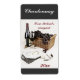Weinflasche, Weinglas, ein Korb mit Trauben und ein Etikett mit Korkenschnecke