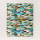 Puzzle in einem Weinflaschenmuster in Erdfarben braun, rost und braun mit türkisfarbenen und blauen Akzenten vor beigem Hintergrund
