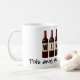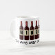 Ist die Tasse mit Kaffee, Tee oder vielleicht sogar Wein gefüllt? Nur Ihr freundlicher Weinliebhaber weiß es sicher. Ehre den Wein auf Deiner Geschenkliste mit einem skurrilen Sortiment an Weinflaschen. Dieses Design eignet sich für weiße oder helle Hintergründe.