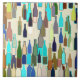 Weinflaschen in Erdfarben braun, rost und braun mit türkisfarbenen und blauen Akzenten vor einem neutralen, beigen Hintergrund