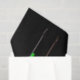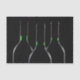 Eine Silhouette von drei schwarzen Weinflaschen mit grünen Etiketten, die im Dunkeln leuchten.