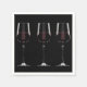 Weingläser mit Rotwein auf schwarz Serviette