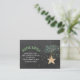 Rustikal graue Holzkohle-Tafel Moderne Winter-Windel-Einlegekarte mit einem Holzstern, Tannenarm und Aquarellblau grüne Punkte spritzen.