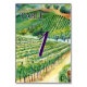 Aquarellmalerei der sanften grünen Hügel voller Traubenreben auf einem Weinberg. Wörter merken "Tabelle 1", können aber mit eigenen Worten und Botschaften personalisiert werden. Entwerfen Sie Ihre eigene Tischkartengestaltung, indem Sie diese Tafelrottafelkarten für Ihre Hochzeit, Ihren Empfang oder andere persönliche Veranstaltungsinformationen anpassen.