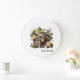 Diese Wanduhr wird in einem stilvollen Weintraubendruck auf dem Land gezeigt. Passen Sie dieses Objekt an oder kaufen Sie es wie gezeigt. Lizenziertes Bild