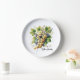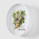 Diese Wanduhr wird in einem stilvollen Weintraubendruck auf dem Land gezeigt. Passen Sie dieses Objekt an oder kaufen Sie es wie gezeigt. Lizenziertes Bild