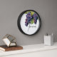 Diese Wanduhr wird in einem stilvollen Weintraubendruck auf dem Land gezeigt. Passen Sie dieses Objekt an oder kaufen Sie es wie gezeigt. Lizenziertes Bild