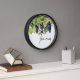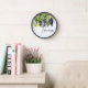 Diese Wanduhr wird in einem stilvollen Weintraubendruck auf dem Land gezeigt. Passen Sie dieses Objekt an oder kaufen Sie es wie gezeigt. Lizenziertes Bild