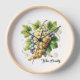 Diese Wanduhr wird in einem stilvollen Weintraubendruck auf dem Land gezeigt. Passen Sie dieses Objekt an oder kaufen Sie es wie gezeigt. Lizenziertes Bild