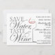 Eleganter Stil Weinprobe Junggeselinnen-Abschied Einladung Design, mit einzigartigem Zitat-Design, Weinglas. Die Hintergrundfarbe ist zu wählen.