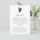 Die handbemalte Information Card des Hotels ist eine wunderschöne und praktische Möglichkeit, Ihren Gästen alle wichtigen Details für ihren bleibe zu liefern. Die Karte zeichnet sich durch einen Single-Traubenhaufen aus, der dem Design eine Touch von Eleganz und Eleganz verleiht. Die Karte enthält alle notwendigen Informationen, einschließlich des Hotelnamens, der Adresse, der Telefonnummer, der Website und der Zimmerblockinformationen. Die Karte ist sowohl informativ als auch optisch ansprechend gestaltet, was sie zu einer willkommenen Ergänzung Ihrer Hochzeitsbriefmarkensuite macht.
