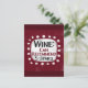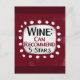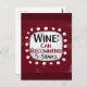 Ein lustiges typografisches Design, das "Wein: Kann empfehlen, 5 Sterne" sagt. Es ist schwarz und bordeauxrot auf einem weißen Rechteck mit funky, spielerisch weißen Punkten umgeben, alles auf bordeauxrotem Hintergrund.