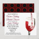 Eine elegante Einladung, die Sie personalisieren und für ein Brautparty senden können. Die Farben und der Schriftart des Textes können nach Ihren Vorlieben geändert werden. Ein rotes und schwarzes Kreissmuster schmückt die Rückseite der Karte.