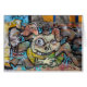 verrücktes Zeug, wie Straßenkunst an einer Wand gesprüht - sieht nicht wie ein glücklicher Typ aus
