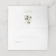 Schick und elegant. Diese hübsche weiße und schlaue grüne Hochzeitsfeier zeichnet sich durch ein detailliertes, wasserfarbenes Blattwerk aus, das im Hintergrund Goldakzente imitiert und in goldener Taupe Text enthält. Optionaler Text in der Weissgrün auf der Innenseite. Sie können das Eingabefeld leer verlassen, wenn kein Text gewünscht wird.