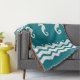WEISS auf aquamarinem Aqua-BLAUE-MEERESPFERD Decke