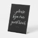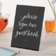 Dieses schöne weiße Schild auf dem schwarzen Gästebuch ist der ideale frag für Hochzeitsgäste, ihre Namen in Ihr Gästebuch einzutragen. Teil der Sammlung Alejandra.