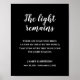 Weiß auf schwarz Das Licht bleibt Zitat-Gedenkmal Poster