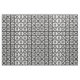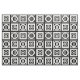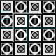 Stilvolle geometrische Stoffe zeichnen sich durch weiße Quadrate mit Platz zwischen ihnen auf einem schwarzen Hintergrund aus. Die diagonal gegenübergestellten dicken Quadrate enthalten jeweils einen dünnen weißen Kreis mit einem dicken gleichmäßigen Zeichen im Inneren. Im Gegensatz dazu enthalten die dünnen Quadrate jeweils einen dicken weißen Kreis, der die Kanten des Quadrats mit einem dünnen vertikalen Gleichzeichen im Inneren Touch. Digitales Bild. Copyright © 2015 Claire E. Skinner. Alle Rechte vorbehalten.