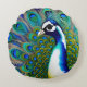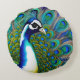 Weiß blau und grün Piebald Peacock Rundes Kissen