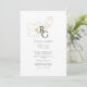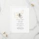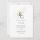 Diese schicke, moderne, minimalistische Einladung zur Hochzeit, mit einem blumengeschmückten und Imitat goldenen Paar monogramm mit elegantem typografischen Text. Dieses schlichte Schwarz-Weiß-Design mit zeitgenössischem Schriftart ist für das moderne, stilvolle und elegante Brautpaar.