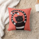 Hervorragendes Katzenwinterkissen mit digitaler Abbildung eines Cartoon, das eine böse Kätzin mit seltsamen, geschwungenen Pfoten über einem lebendigen Korallenhintergrund mit Schneeflocken gestreift hat.