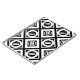 Das fett geometrische Muster besteht aus abwechselnd dicken und dünnen weißen Diamanten, die auf einem schwarzen Hintergrund Platz zwischen ihnen haben. Die dicken Diamanten enthalten jeweils einen dünnen weißen Kreis mit einem dicken weißen gleichförmigen Zeichen in einem Winkel im Inneren. Im Gegensatz dazu enthalten die dünnen Diamanten jeweils einen dicken weißen Kreis, der seine Kanten mit einem dünnen, weiß gekachelten gleichen Zeichen im Inneren Touch. Digitales Bild. Copyright © 2014 Claire E. Skinner. Alle Rechte vorbehalten.