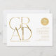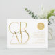 Ein kühner, dekorativer Schriftart fängt sofort an und Set für diese formelle Abschluss-Einladung in Weiß mit Imitaten goldenen Folienakzenten. Ein auffälliges Muster von Schaltkurven verleiht dem Rückwärtsgang ein modernes Art-Déco-Aussehen. Eine Vorlage ermöglicht es Ihnen, die Details Ihres Ereignisses einfach anzupassen. Suchen Sie ID905, um weitere Farboptionen für dieses Design zu sehen.