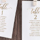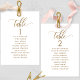 Helfen Sie Ihren Gästen mit diesen eleganten, modernen Sitzplakaten mit Gästebamen ihren Tisch zu finden. Doppelseitige Karten, damit die Gäste von beiden Seiten, vorn oder hinten nach ihren Namen suchen können. Der Platz ist frei, um Clips oder Lochpunch für hängende Displays oder Tischhalter zu verwenden. Weißer Hintergrund und Text in Gold. Moderne handgeschriebene Kalligrafiedetails. Teil unserer "Elegant Calligraphy Wedding Stationery" Kollektion. Die gesamte Sammlung finden Sie unter: https://www.zazzle.com/collections/elegant_calligraphy_minimalist_wedding_stationery-119497981924462546