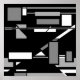 Kürzen Sie auf Standardrahmen oder Ihre eigene Vorliebe (in kleinen bis großen Größen von verschiedenen Proportionen und verschiedenen Papiertypen erhältlich). Das abstrakte, geometrische Design in einer Kombination aus Weiß und mittelgrauen Formen und Linien auf schwarzem Hintergrund wird durch den modernen Designstil des Mitteljahrhunderts mit zeitgenössischem Look inspiriert.