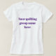 Dieses Weiß mit lila Quilter-T - Shirt kommt auch in hübsch hellblau mit dunkelblauen Buchstaben und grau mit tiefroten Buchstaben. Geben Sie einfach den Namen Ihrer Quilting-Gruppe ein. Komfortabel und waschbar.