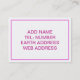 Elegante Visitenkarte in Weiß mit rosa Rahmen. Klicken Sie auf die Schaltfläche Anpassen, um die Position des Textes sowie die Farbe und den Schriftart der Buchstaben zu ändern.