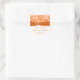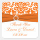 Weiß, orangefarbene Damaske-Hochzeitssticker Quadratischer Aufkleber