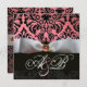 WEISS RIBBON PINK SCHWARZES DAMASK-MONOGRAMM EINLADUNG