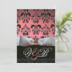 WEISS RIBBON PINK SCHWARZES DAMASK-MONOGRAMM EINLADUNG
