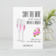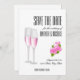 Feminines schönes Design verbindet eleganten weißen Hintergrund mit phantastischer moderner Typografie und rosa Blume sowie Champagnergläser. Save the Date Karte für Ihre Hochzeit ist wichtig und Sie verdienen die beste. Dieses elegante und luxuriöse Design wird perfekt sein.