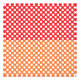Weiße Polka Punkte auf einem halb roten, halb orangen Hintergrund.