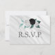 Weiß, schwarz und aquamarine Blume - Marmorspeise RSVP Karte