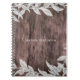 White & Silver Blätter & Rustic Holz Elegant Notebook Journal. Passen Sie die Vorderseite mit oder ohne Text an.